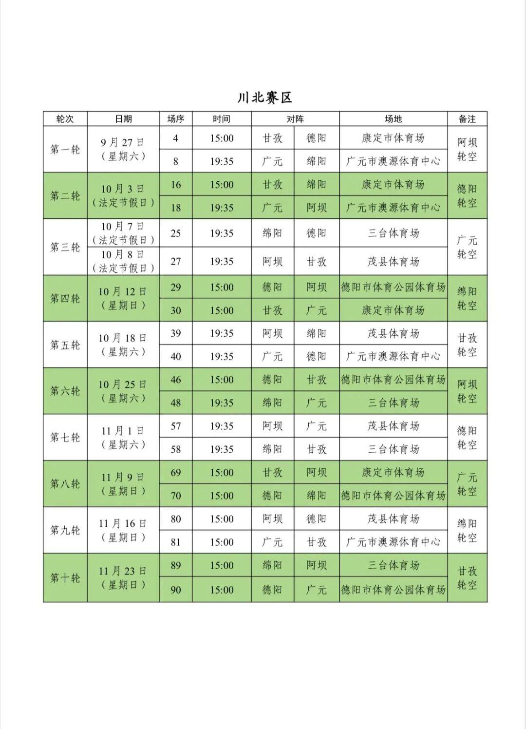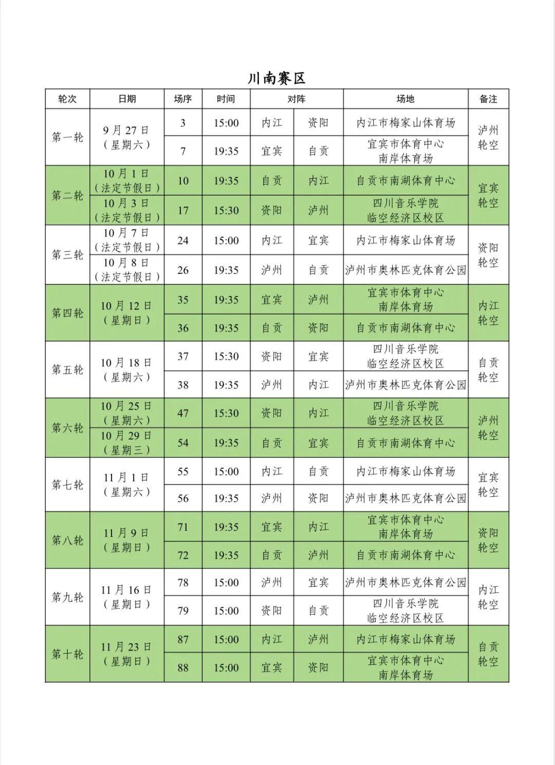 记者9月11日从四川省足球协会获悉,“川超”开赛在即,分区赛阶段4大赛区的竞赛日程正式出炉。