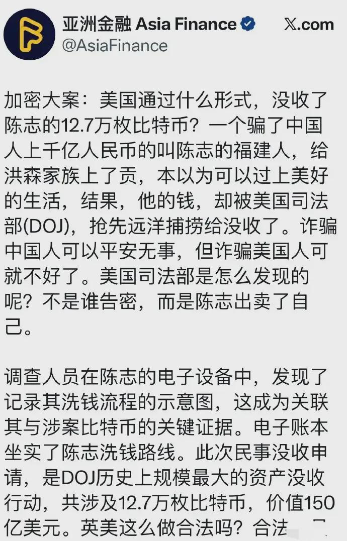 2025年10月那场震惊全球的执法行动中,最引人瞩目的,无疑是美国司法机关一举没收了陈志名下的127,271枚比特币。